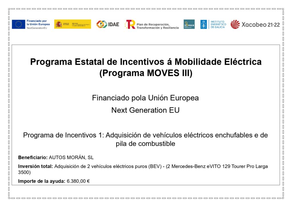 AUTOS MORÁN, SL: 2 vehículos eléctricos puros (BEV) – 2 Mercedes-Benz eVITO 129 Tourer Pro Larga 3500